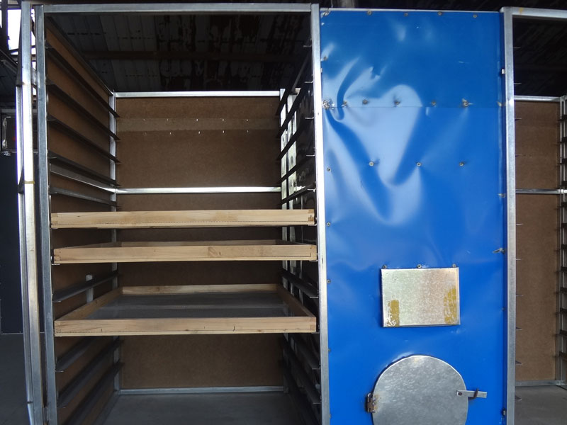 2、 使用時正確操作方法:將烘干物料均勻的擺放在篩網(wǎng)上,按順序依次裝入箱休內(nèi),關(guān)好箱門,暢幵左右頂蓋(如果物品水分相對較小,也可以用裝箱紙板將頂部蓋起),開啟風(fēng)機,然后將煙煤塊或木柴放入爐膛中點燃進行加熱,開始火力不宜過大,應(yīng)慢火加溫。隨著烘干物品水分的蒸發(fā),烘干過程過幾小時后,在慢慢加大火力。(具休根據(jù)物品烘干工藝進行靈活操作)