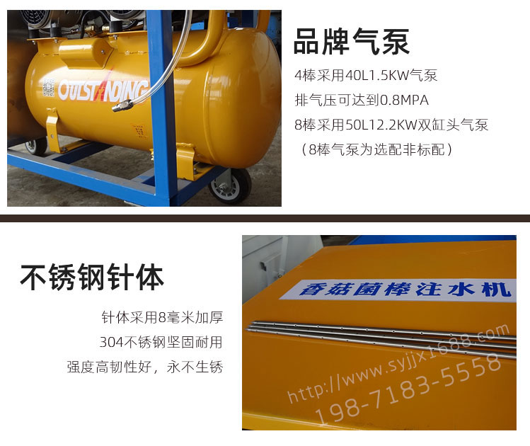 香菇菌棒注水機(jī)機(jī)型特點(diǎn) :可回收水,對供水壓力和水源無特殊要求,注水量可根據(jù)客戶技術(shù)要求,定時(shí)定量隨用隨調(diào),全新雙頭8棒循環(huán)注水模式,注水效率提高一倍,四面防濺防漏水,水回收利用率達(dá)到90%以上,高比例的循環(huán)回收水功能可有效節(jié)約用水,降低棚內(nèi)排濕難度,避免爛棒,可以在水源中按比例加入營養(yǎng)素有效提高香菇品質(zhì)和產(chǎn)量。