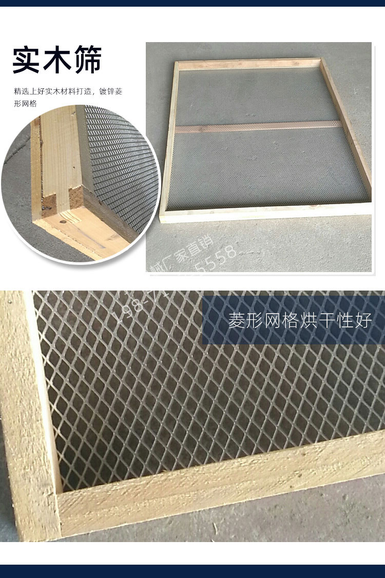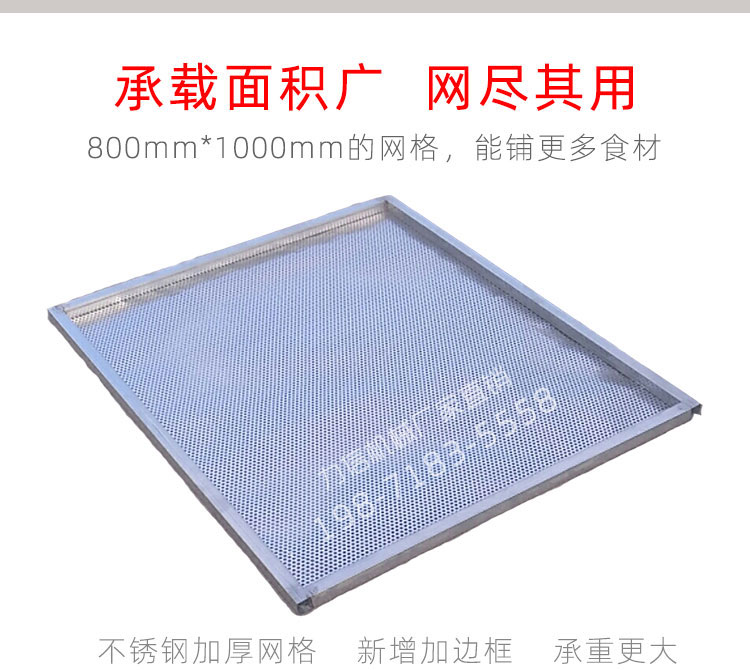 可根據(jù)客戶尺寸要求定制烘盤,特殊要求網(wǎng)盤底部可做加強筋,增加承重強度。四邊可采用不銹鋼方管貨木質(zhì)邊框。優(yōu)點為可定制任意尺寸,滿足客戶需求